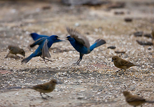 two male Indigo Buntings fighting