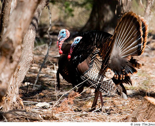 close up of two Tom Turkeys in display