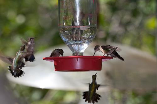 Hummingbird swarm at feeder