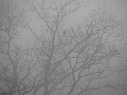 Hawk in tree on rainy day