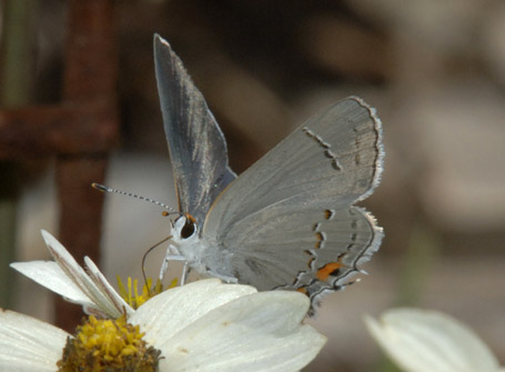 Gray Hairstreak Butterfly nectaring on Black-foot Daisy