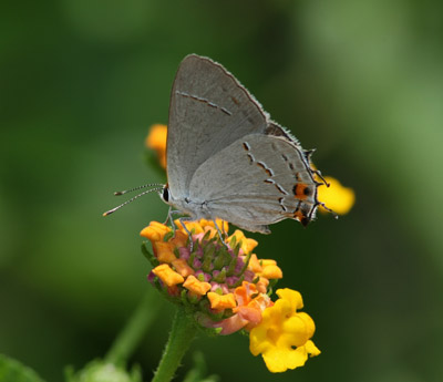 Gray Hairstreak Butterfly nectaring on Lantana flower