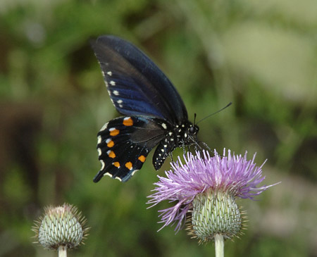 Pipevine Swallowtail Butterfly nectaring on Texas Thistle
