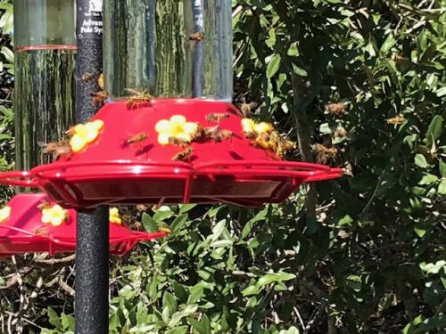 Bees feeding on sugar water at Hummingbird feeder