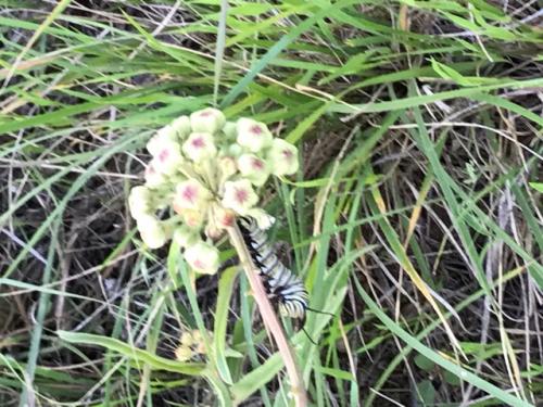 Monarch Caterpillar on Antelope Horn plant in flower