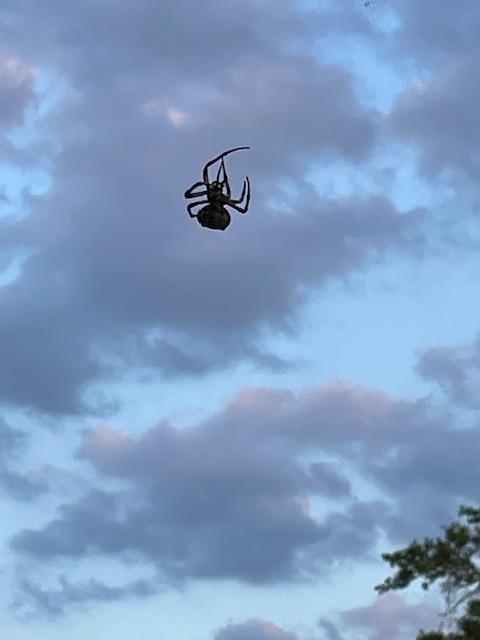 Spider building web across open raod