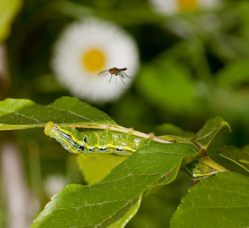 Caterpillar (Hippia packardii) eating Mexican Buckeye tree leaves