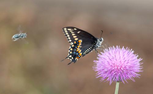 Black Swallowtail butterfly with bee