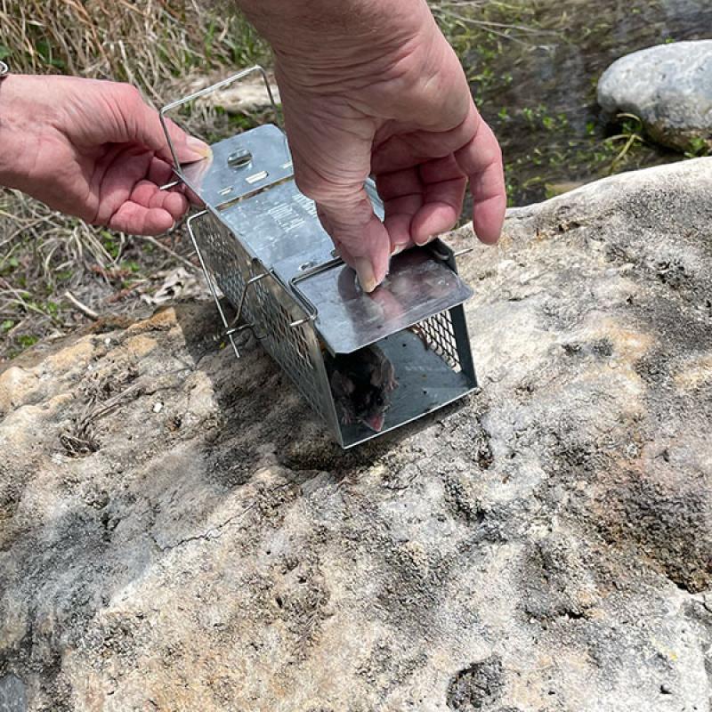 Caretakers caught a mouse in the house with a live trap, it was released by the river.