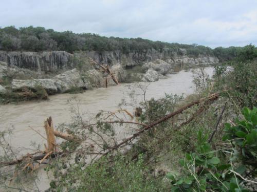 After the big May 23 flood, at Vulture Gulch, all of the ancient Bald Cypress Trees are broken or completely washed away in this canyon of the Blanco River.