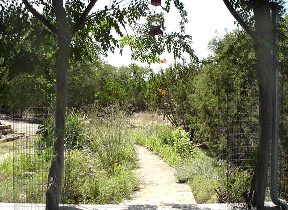 Trumpet Creeper vine hanging near hummingbird feeder