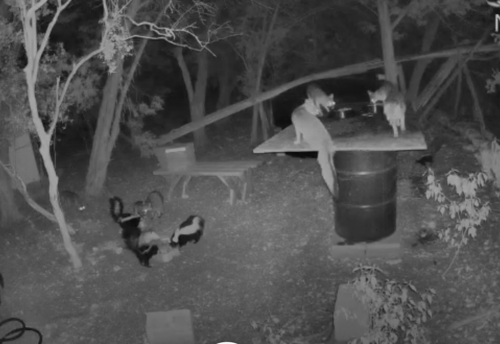 Night feeding area brings Skunks, Foxes, Armadillos, Possums and Raccoons.