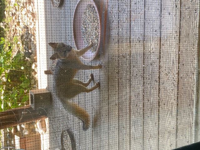 Caretakers caught this Diamondback Rattle Snake removed from under the porch. It had killed a young Rock Squirrel, likely struck because the Rock Squirrels are curious and may have startled the snake. The snake was removed and relocated far away from the house.