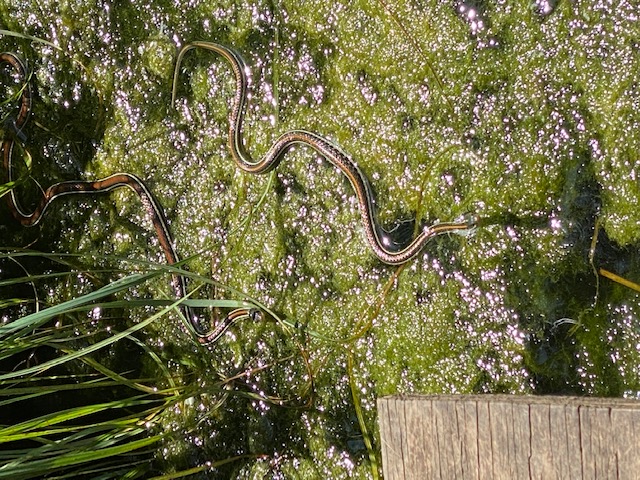 Two Ribbon Snakes in pond