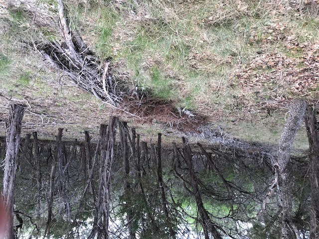 Fallen trees from 2015 flood debris are left on the ground to decompose in place.
