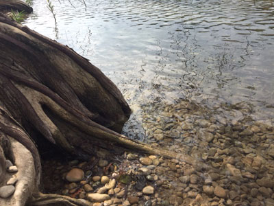 Classic Bald Cypress knees in rocky river bottom.