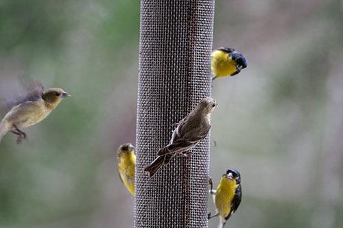 Saw sixteen Lesser Goldfinches on Thistle feeder