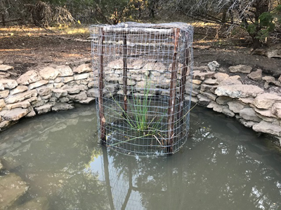Built cage around metal trough to protect plants from racoons and deer browse.