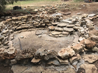 This pond was man-made in a draw. The rocks surround the main body of what will be standing water. The slope is designed for overflow runoff to travel aound the main rock pond. The rocks are secured with concrete to prevent leaking.