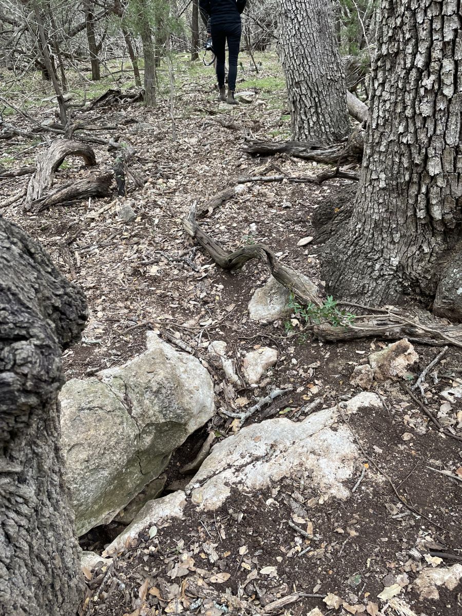 A Macabre scene. An 8 point Deer skull found tangled in trees with a piece of poly twine. Caretakers suspect that its antlers got entangled with the twine and it got further entangled in the trees as it tried to free itself. It likely broke its neck. Caretakers suspect that this is the type of twine used in home construction for building forms. Caretakers at Waterstone do not use this type of twine.