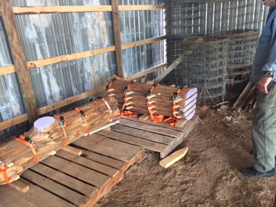 The end cuts are painted to prevent cracking and help preserve the wood. The dates help us know when they are properly cured.