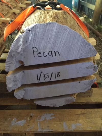 Salvaging slabs of Pecan wood from flood. Cleaning up flood debris from the May 2015 flood continues.
