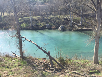 River is very clear, but large trees along the shoreline are damaged and mostly lost from 2015 flood.