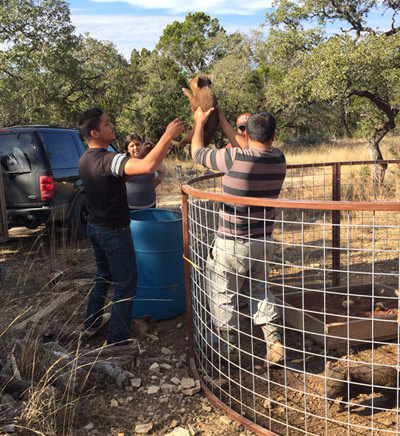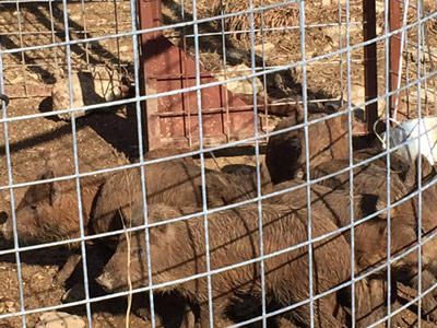 Success! Caught 7 young feral hogs in 'Swine Saloon' live trap.