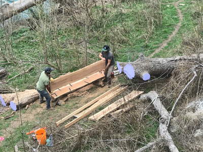 Salvaging slabs of Pecan wood from flood. Cleaning up flood debris from the May 2015 flood continues.