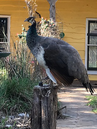 Female Peacock hen passing through. She hung around the Turkeys for a while, then moved along.
