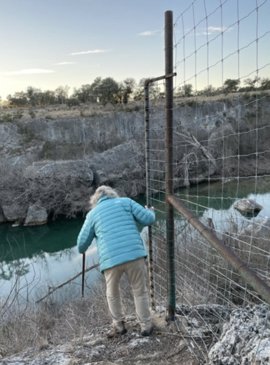 Caretaker inspecting the new deer proof fence as it clears the edge of the bluff