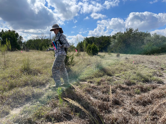 Tree Folks planting native grass seeds in upland near Hay Barn.
