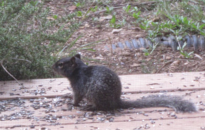 Young Rock Squirrel eating Black oil Sunflower seeds
