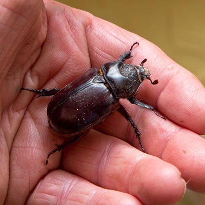 Caretakers found this Ox Beetle attracted to the porch light. It measured about 45mm in length before being turned loose under a dogwood tree behing the house.