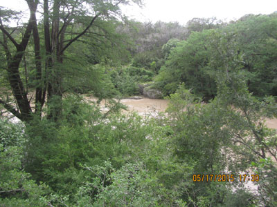 Blanco River flooded at Vulture Gulch. This image is used as a "before " picture to compare to the big 50 foot flood rise on May 23, 2015, Memorial Day weekend. Compare this image to Journal entry May 23, 2015 for perspective.