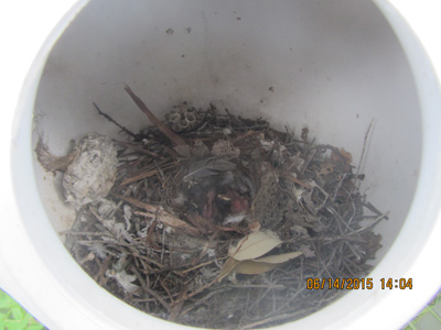 Three baby Wrens in Purple Martin House nest.